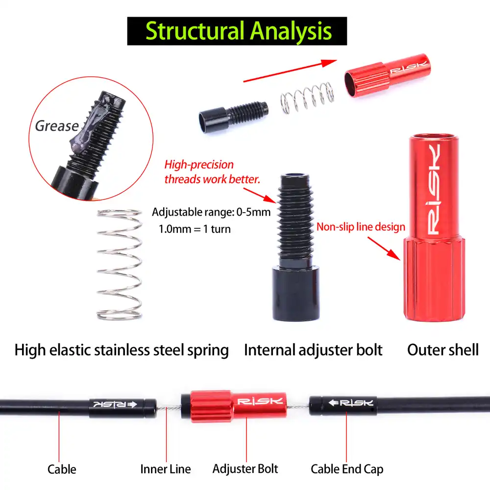 Inline cable adjuster shifter gear brake mtb urban road index black alloy barrel. 12 new offers bicycle cable adjusters bike brake cable gear shift connector line regulator adjuster housing cap 1 pair 4 7 out of 5 stars 4. Gear cable inline tension adjuster in 6061 anodised alloy 2 pack. Only 11 left in stock order soon.