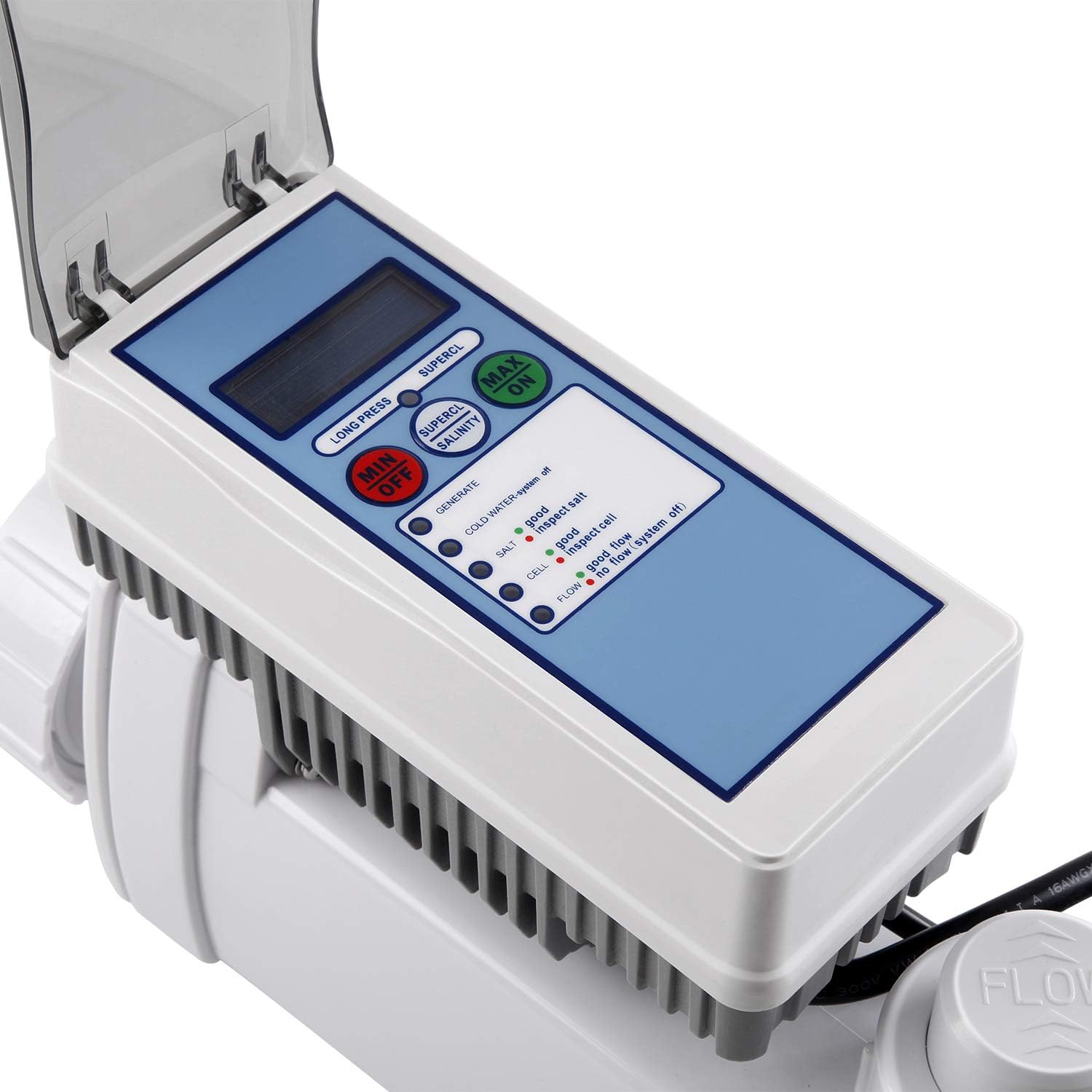 Screw the sensor back into the intellichlor and turn everything back on. When your intellichlor salt system starts to read no flow when there is clearly water flow or if it is sensing water flow when your pump is off its probably time to replace your flow switch. Of operation which is 3 5 years of service. Locate the flow temperature switch cover on the intellichlor cell.